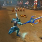 TIDAL SURGE – Poseidon charges his trident granting additional move speed and making his auto attacking spread out two additional shots which hit for 50% of his physical power, BUT cannot critically hit or apply on hit effects. Reduces Tide by 35.